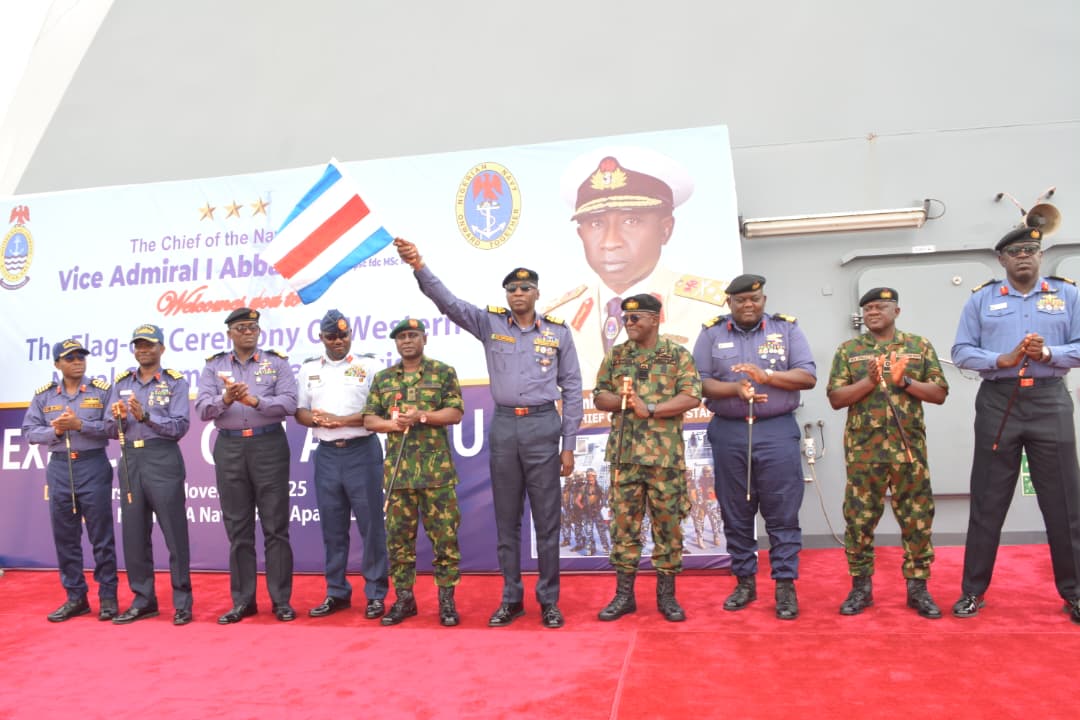 On 27 November 2025, the Flag Officer Commanding Western Naval Command, Rear Admiral Abdullahi Abubakar Mustapha (GSS), officially flagged off Exercise OMI AILEWU 2025 onboard the Nigerian Navy Ship KADA. The exercise, aimed at combating major maritime security threats, including oil theft, illegal fishing, arms smuggling, human and drug trafficking, and attacks on critical national infrastructure, is within the Western Maritime corridor of Nigeria.